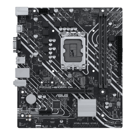 Asus Prime H610M-K D4Intel® H610 (LGA 1700) mic-ATX motherboard with DDR4, PCIe 4.0, M.2 slot, Realtek 1 Gb Ethernet, HDMI®, D-Sub, USB 3.2 Gen 1 ports, SATA 6 Gbps, COM header, RGB header