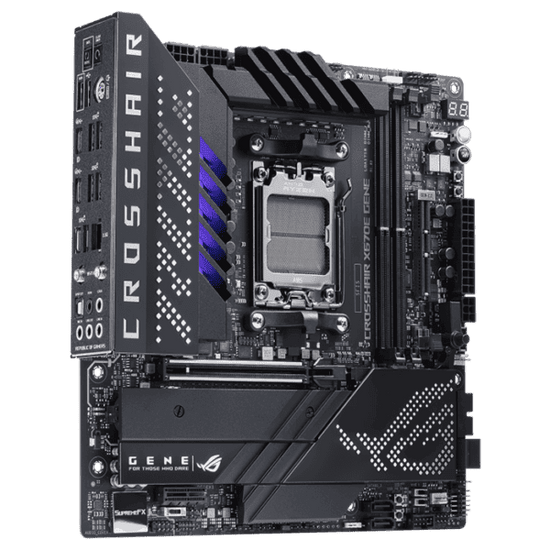 Designed for the robust multi-threaded capabilities of the AMD Ryzen™ 7000 Series processors, the ROG Crosshair X670E Gene boasts a dedicated sixteen-phase power solution. This intricate setup is specifically engineered to harness the potential of these processors. Coupled with an optimized DDR5 layout, this agile dynamo delivers blistering performance. Empowering users of all levels, ROG offers an array of exclusive software and firmware technologies, catering to both beginners and seasoned veterans.