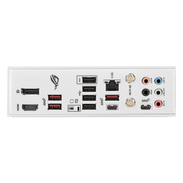 | Back Panel I/O Ports | 1 x USB 3.2 Gen 2×2 port (1 x USB Type-C®) 4 x USB 3.2 Gen 2 ports (3 x Type-A + 1 x USB Type-C®) 4 x USB 2.0 ports (4 x Type-A) 1 x DisplayPort 1 x HDMI® port 1 x Wi-Fi Module 1 x Intel® I225-V 2.5Gb Ethernet port 5 x Audio jacks 1 x BIOS FlashBack™ button |