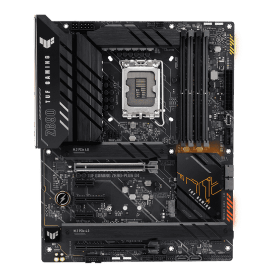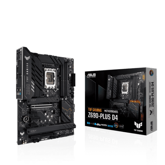 Asus TUF GAMING Z690-PLUS D4Intel® Z690 (LGA 1700) ATX gaming motherboard, 15 DrMOS power stages, PCIe® 5.0, DDR4 memory, four M.2 slots, Intel 2.5 Gb Ethernet, HDMI®, DisplayPort