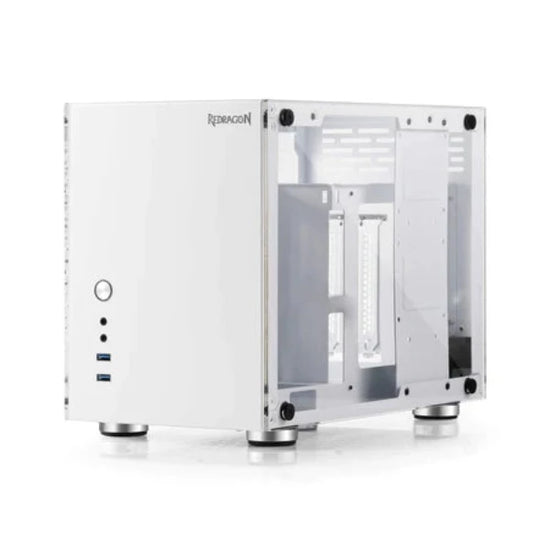 Redragon EB211 Mini-ITX Gaming PC Case, Small Form Factor Computer Chassis w/ Vented Honeycomb Acrylic Transparent Panels, Triple-Slot GPU and 360 Degree Accessibility, White