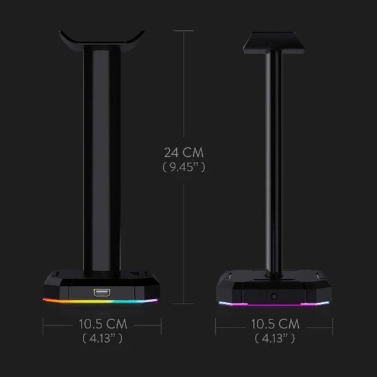 Durable aluminum construction with an ultimate display for your headset Dynamic RGB lighting with 10 light effect mode options Type C USB connector with 4 port USB 2.0 ports featuring charge and sync Non-slip rubberized base provides stability and protection...