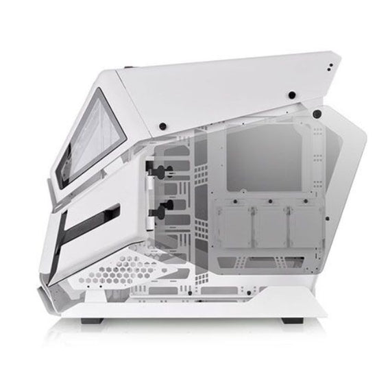 The Thermaltake AH T600 Snow White Full Tower Chassis redefines the traditional PC case with a helicopter-inspired open frame design. It features two robust 5mm tempered glass panels on both the left and right sides and supports motherboards up to E-ATX (up to 10.5'' wide).